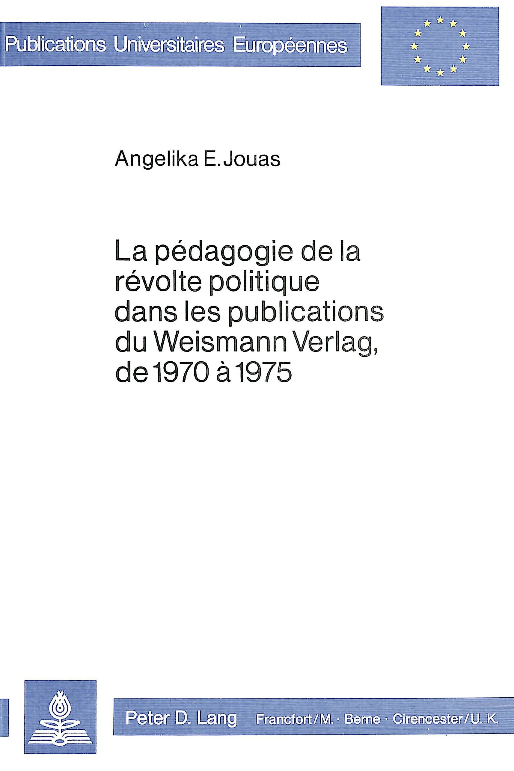 LA PEDAGOGIE DE LA REVOLTE POLITIQUE DANS LES PUBLICATIONS DU WEISMANN VERLAG, DE 1970-1975