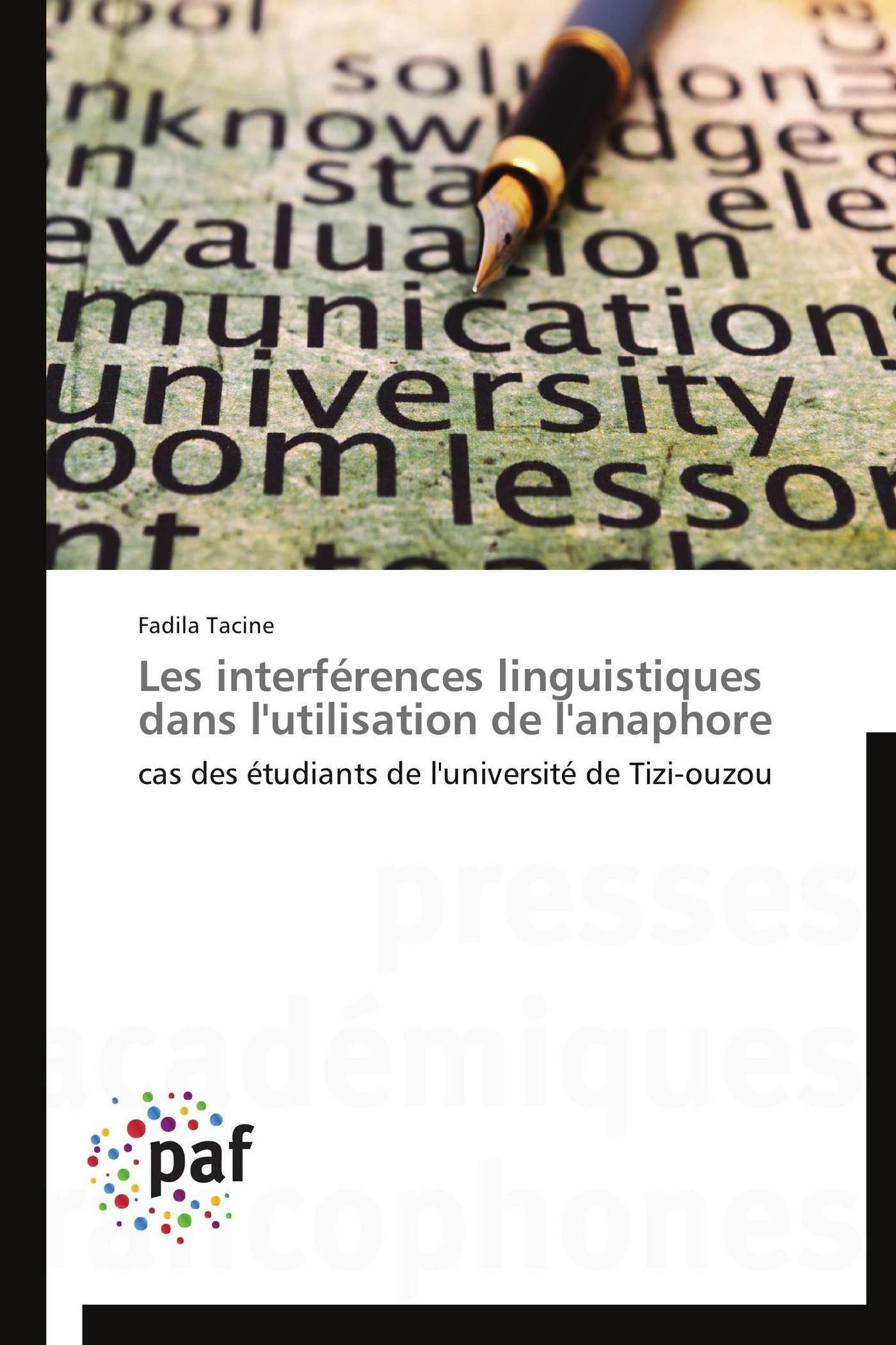 Le plurilinguisme n'est pas un simple rapport extérieur à la langue ; au contraire, il représente un facteur de première importance qui s'intègre organiquement dans le cadre de la pluralité des cultures. La langue réalise un découpage du monde vécu spécifique d'une société donnée. Or, quand deux, voire plusieurs langues entrent en contact dans un champ socioculturel, et lorsque ce fait dépasse la simple coexistence pour devenir interaction, il y a de fortes chances pour que ce découpage soit remis en cause. Apparaissent alors des restructurations et des décalages, perçus souvent comme des phénomènes qui viennent remettre en question un ordre du monde réglé sur un ordre du langage. La pratique de la langue française par les locuteurs algériens, notamment dans le milieu estudiantin, est exprimée avant tout dans une langue d'emprunt et que l'interférence linguistique est inévitable. Ce live, travail réalisé en sociodidactique sur le terrain universitaire de Tizi-Ouzou, vise à mettre en relief les difficultés rencontrées par les étudiants dans l'utilisation des rappels anaphoriques.