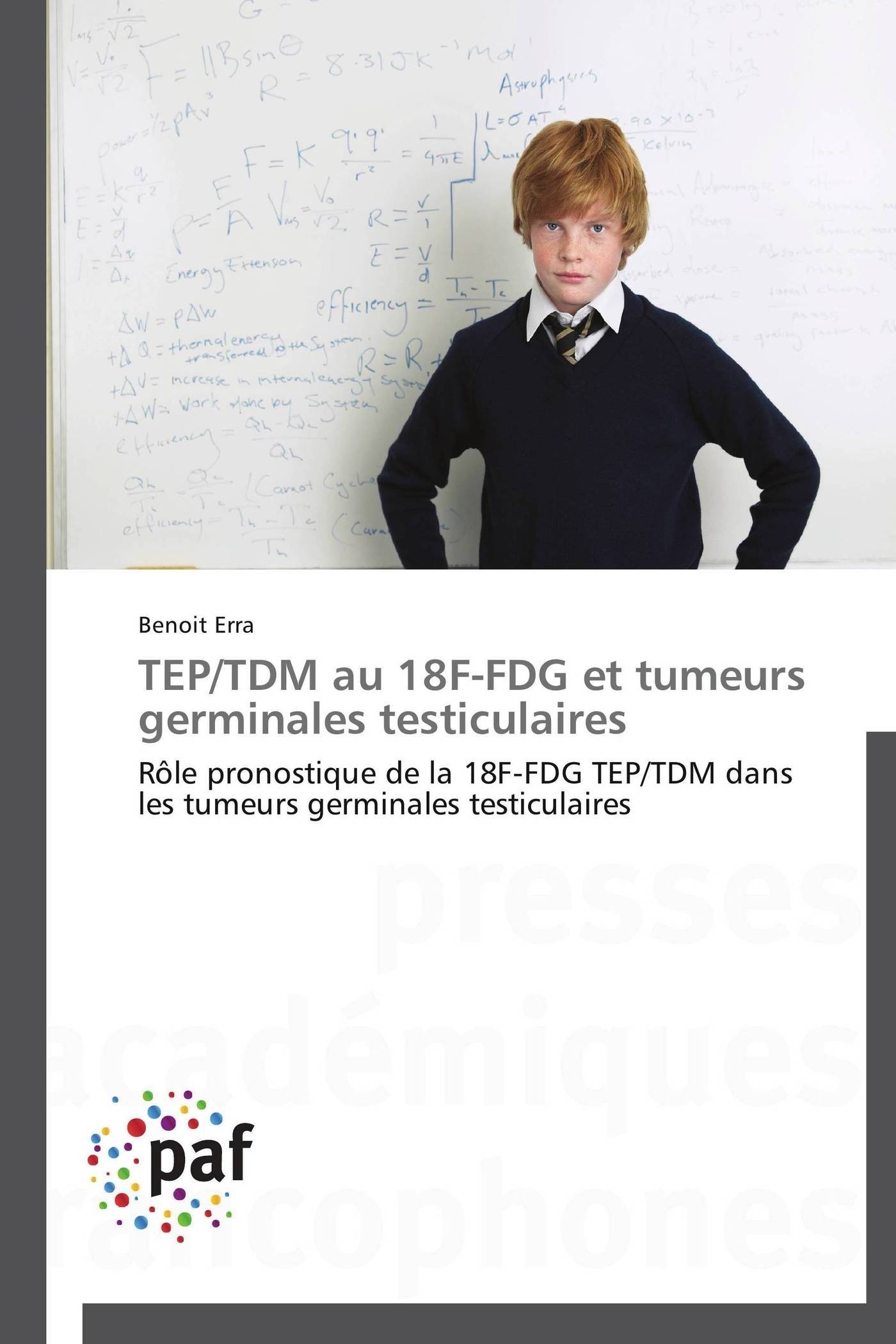 La tomographie par émission photonique (TEP), notamment par l'étude du métabolisme glucidique, tient une place importante dans la prise en charge de nombreuses pathologies cancéreuses. Son rôle est cependant, pour l'heure, limité dans les tumeurs germinales testiculaires (TGT). Après un rappel de la prise en charge des tumeurs germinales du testicule, cet ouvrage propose une revue de la littérature disponible en 2012 sur le rôle pronostique de la TEP dans les pathologies néoplasiques, pour finir sur une étude spécifique concernant les tumeurs germinales testiculaire.