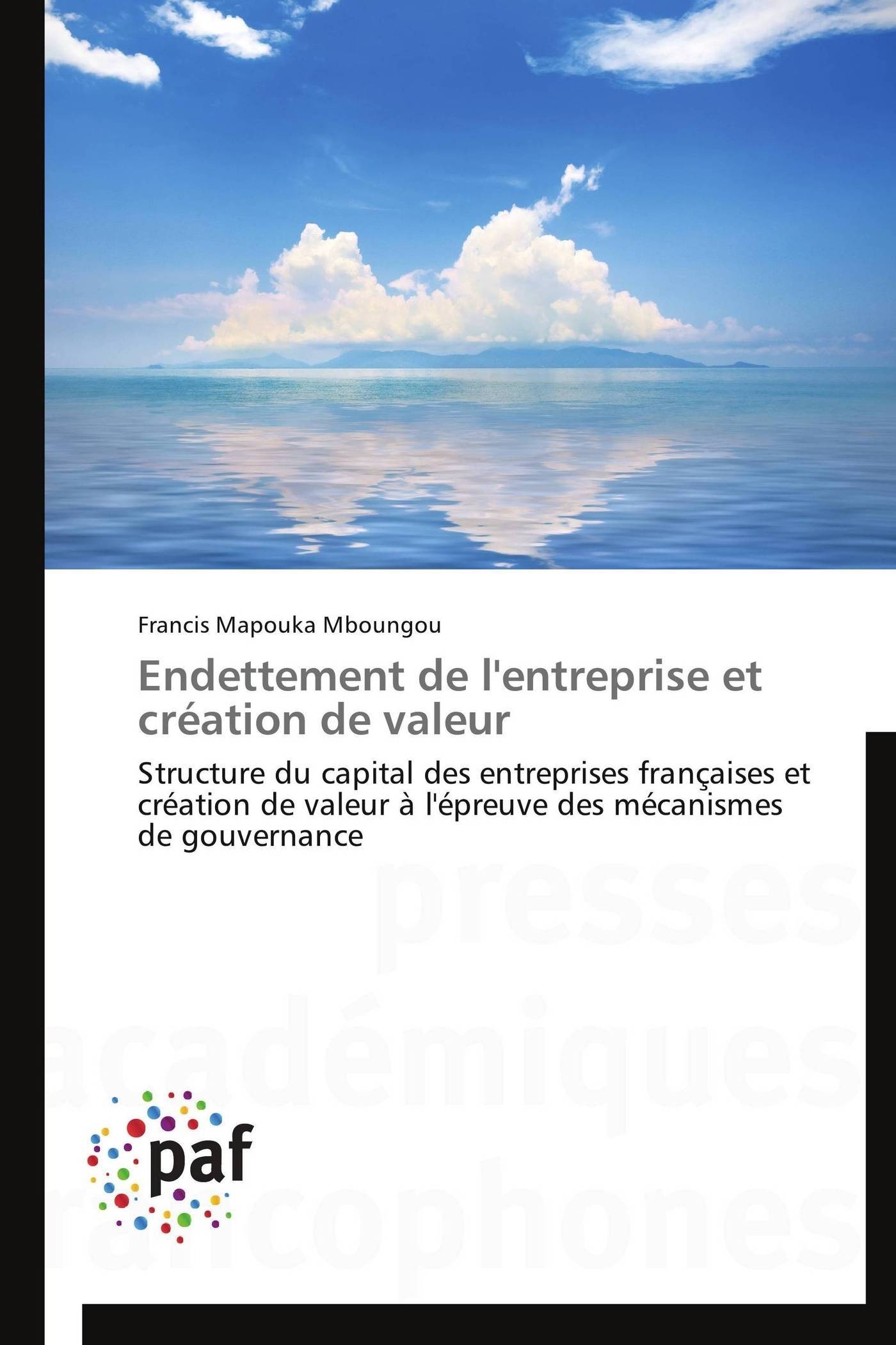 Face à l'importance que revêt l'endettement et la création de la valeur, une étude approfondie des ressorts de celle-ci parait fondamentale. Cette question est souvent traitée uniquement sous l'angle de la fiscalité. La perspective est considérablement enrichie si, au lieu de rester aux « frontières » de l'entreprise et dans le cadre de marchés parfaits, les mécanismes de gouvernance, le comportement et les intérêts, parfois conflictuels, des acteurs de la sphère de l'entreprise sont intégrés dans l'analyse. On se trouve, alors, dans une conception contractuelle de la firme. A partir de ce cadre d'autres raisons et explications de la création de la valeur sont identifiées. L'objet de cette étude, dont le dépassement de théories économiques à visée normative, fait état du lien existant entre endettement et création de valeur ainsi que l'influence de certains mécanismes de gouvernance sur cette relation. Parfaitement accessible et illustré par une partie empirique, cet ouvrage s'adresse aux étudiants d'économie et gestion en licence et master, ainsi qu'aux étudiants en écoles de commerce. Il intéressera aussi les doctorants, les enseignants-chercheurs et les professionnels.