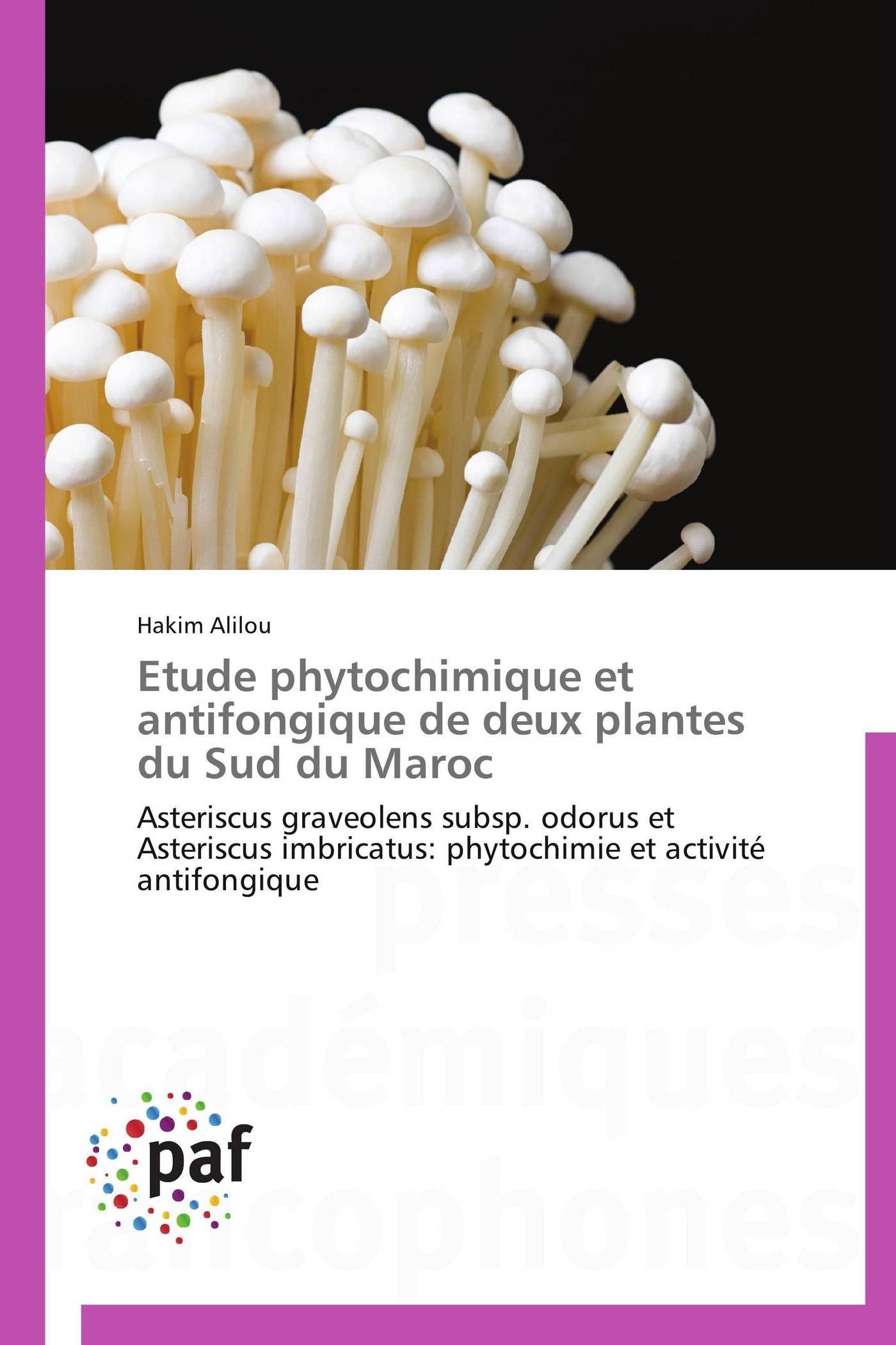 Cette étude a concerné deux plantes caractérisant la région du Sud du Maroc : Asteriscus graveolens subsp. odorus et Asteriscus imbricatus. Une première partie de ce travail a concerné l'étude phytochimique pour prospecter les différents composés chimiques de ces deux plantes connues dans la pharmacopée traditionnelle marocaine pour le traitement de la fièvre, des désordres des tractus gastro-intestinaux, des douleurs céphaliques, de la bronchite, des coliques, des gastralgies et de la blennorragie. En utilisant les différentes techniques de la spectroscopie de RMN et IR, une nouvelle lactone sesquiterpène a été isolée de la plante Asteriscus graveolens subsp. odorus, pour la première fois, nommée naupliolide avec un nouveau squelette tétracyclique. Pour faire face aux problèmes des champignons qui attaquent les serres et les stations de conditionnement de la région du Sud du Maroc, une deuxième partie de ce travail a été l'objet d'une étude antifongique des extraits, des huiles essentielles et des produits purs des deux plantes étudiées contre les champignons : Penicillium digitatum, Penicillium expansum et Botrytis cinerea.