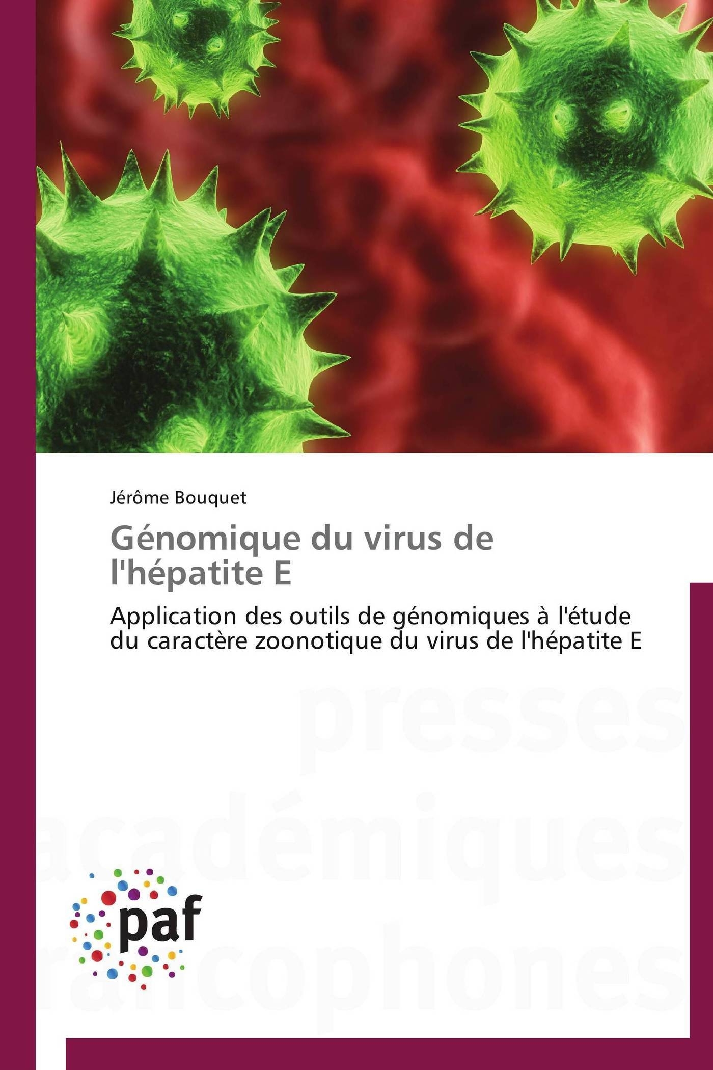 En France, le virus de l'hépatite E (VHE) est responsable de cas d'hépatites aigües sporadiques dont les origines et les modes de transmission sont incertains. Or, le VHE est le seul virus des hépatites à infecter d'autres espèces animales que l'homme. Les objectifs de cette thèse ont été d'évaluer le risque de transmission zoonotique du VHE porcin pour l'Homme en France par des méthodes de génomique. Ces travaux développés en 4 parties ont permis de montrer le risque zoonotique du VHE du porc consommé en France et son adaptation génomique complète à ses deux espèces hôtes. Le VHE est un virus zoonotique à ARN particulier dont la variabilité génétique dépend de son épidémiologie singulière, qui inclue la possibilité de transmissions alimentaires à partir d'un réservoir animal domestique. Ce travail permet enfin de poser les perspectives d'études phénotypiques du VHE.