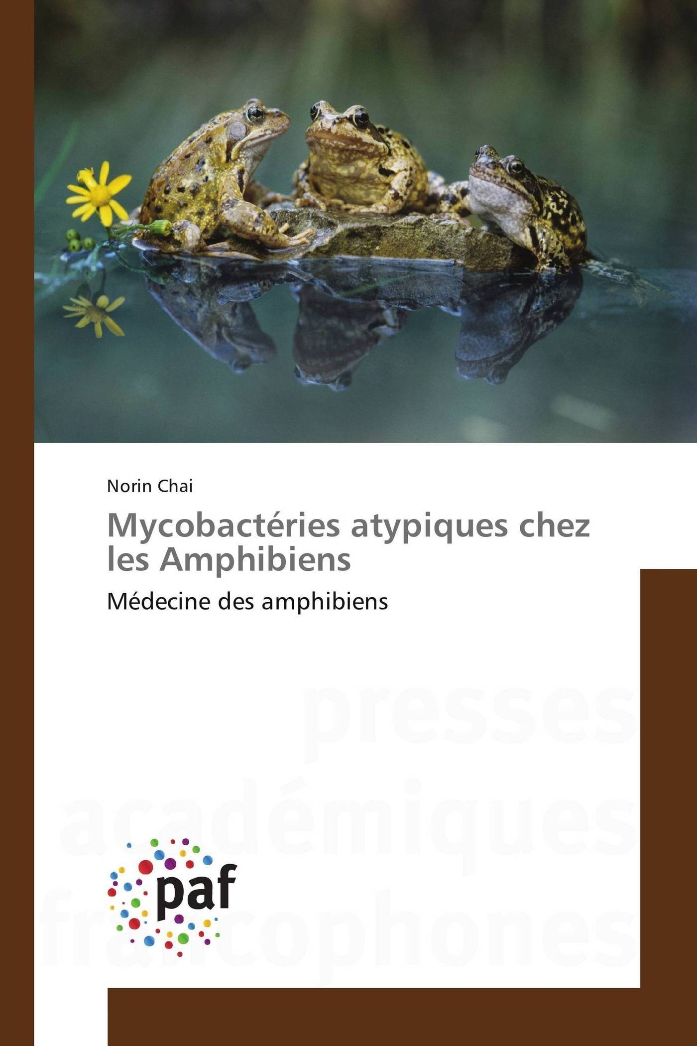 En santé humaine, les mycobactéries atypiques occupent une place très importante, surtout chez les immunodéprimés. Chez les Amphibiens, de nombreuses espèces ont été isolées : Mycobacterium abscessus, M. chelonae, M. fortuitum, M. marinum, M. gordonae, M. szulgai, M. ulcerans-like, M. liflandii, M. ranae, M. thamnospheos et M. xenopi. Dans les laboratoires de recherche, les épizooties de mycobactérioses représentent de véritables catastrophes sur le plan économique et scientifique. Dans les animaleries expertisées, à la gestion et aux infrastructures différentes, des épizooties mycobactériennes ont été observées et étudiées. Notre étude décrit la première épizootie d'amphibiens due à M. szulgai, et le premier cas en France d'infection d'une colonie de X. tropicalis, due à une mycobactérie ulcerans-like, M. liflandii. Cet ouvrage représente également une mise à jour de la médecine des Amphibiens.