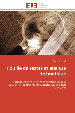 Cet ouvrage traite des problématiques de l'identification des thèmes et de l'assistance à l'analyse thématique des documents textuels. L'auteur y fait état d'un projet dont l'objectif général est de développer et de valider deux méthodologies de fouille de textes, fondées respectivement sur la catégorisation et sur la classification (clustering) automatiques permettant d'assister efficacement l'identification des thèmes et, surtout, l'analyse thématique des documents textuels. Dans ce projet, l'auteur vise ainsi à effectuer un transfert de concepts et de méthodologies provenant, d'une part, des recherches théoriques et pluridisciplinaires portant sur l'analyse thématique et, d'autre part, des recherches appliquées en fouille de textes afin de proposer une méthodologie et un prototype d'application flexible visant à assister les chercheurs en sciences humaines dans leur travail d'analyse thématique des textes. Ce projet cherche à contribuer à l'avancement des connaissances en ce qui a trait à l'opérationnalisation de l'analyse thématique à l'aide de techniques supervisées et non supervisées de fouille de textes.