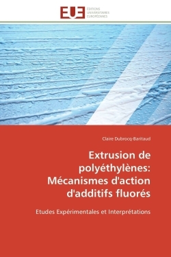 Les procédés de fabrication de films thermoplastiques sont souvent limités en débit par l'apparition de défauts d'aspect, appelés « peau de requin ». Des additifs à base de polymères fluorés sont utilisés industriellement pour améliorer la qualité des produits. Dans ces travaux de thèse, trois additifs fluorés sont étudiés en procédé d'extrusion sur un polyéthylène basse densité linéaire. Plusieurs techniques expérimentales sont mises en place afin de réaliser le suivi de la pression, du champ de vitesse et des dépôts fluorés en filière. Les essais montrent qu'après un temps de latence, les défauts d'extrusion se mettent à disparaître et la pression à chuter. Des observations par microscopie électronique permettent de voir l'apparition simultanée de dépôts fluorés discontinus et micrométriques à la surface de la filière. L'évolution du profil de vitesse indique que du glissement à la paroi est créé. Une corrélation spatio-temporelle est découverte entre la densité surfacique de dépôt et le glissement. Un modèle expliquant l'apparition du dépôt est alors développé et comparé aux résultats expérimentaux. Ce livre s'adresse à tous ceux qui s'intéressent à l'extrusion des polymères.