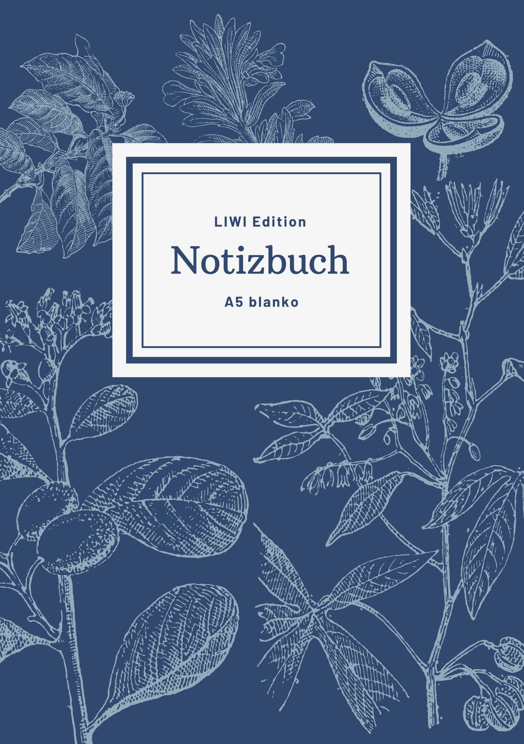 Notizbuch schön gestaltet mit Leseband - A5 Hardcover blanko - 100 Seiten 90g/m² - floral dunkelblau - FSC Papier