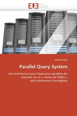 Avec la croissance rapide du volume d'informations gérées dans les grandes bases de données, les SGBDs relationnels sont confrontés à des problèmes de performances. La limite de l'approche centralisée a incité les chercheurs à proposer les meilleures solutions possibles afin d'obtenir des gains de performances des traitements et de disponibilité des données. La combinaison de l'approche de répartition des données avec le traitement parallèle a fait naître les SGBD parallèles. Parmi les architectures adoptées, celle de « réseau de stations » (Network of Workstations). Ce manuscrit décrit notre contribution dans ce domaine : le « Parallel Query System » (PQS), permettant de faire exécuter les requêtes sur un ensemble de serveurs de bases de données. L'idée développée a permis de prendre en charge la possibilité d'implémenter une variété d'algorithmes. Nous avons discuté certains points essentiels, notamment la haute disponibilité, l'équilibrage de la charge, la gestion de la concurrence et l'extensibilité. Aussi, nous avons pris en considération la modularité de notre système, afin qu'il soit flexible et adaptatif à d'éventuelles considérations.