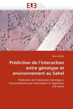 Ce travail porte sur la prédiction de l''interaction entre génotype et environnement (GxE) et est appliquée au contexte sahélien. Après un tour d''horizon des principales méthodes d''analyse de la littérature, nous proposons la méthode APLAT. Le rendement de génotypes prédit à l''aide de covariables d''environnement par un modèle de simulation de cultures est développée en série de Taylor à l''ordre 1 au voisinage du vecteur de paramètres d''un génotype de référence. Nous nous ramenons alors approximativement à un modèle linéaire où la matrice des regresseurs est remplacée par celle des dérivées partielles par rapport aux paramètres. Le très grand nombre de paramètres variétaux généralement constatée dans les modèles de simulation de cultures conduit à un nombre important de regresseurs; d''où une estimation par régression Partial Least Squares (PLS). Par la suite, nous proposons APLAT-mixte, une extension de APLAT et introduisons la technique PLS-Mixte pour estimer les composantes de variance dans un modèle où il y a plus de regresseurs que d''observations. L''algorithme itératif proposée consiste à imbriquer la régression PLS dans l''algorithme Expectation Maximization (EM).