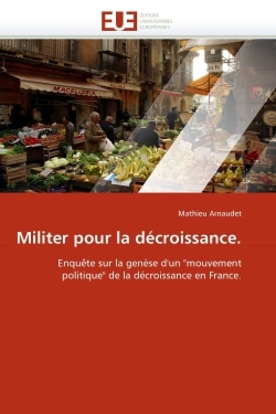 Le travail s''inscrit dans une perspective de sociologie politique et s''intéresse à l''engagement politique des militants de la Décroissance. Il a permis de mettre à jour la construction d''une identité idéologique forte qui avait comme effet d''inciter à l''engagement. La suite du travail s''intéressait au rapport qu''entretiennent les militants au politique. Il ne s''agit pas pour ces militants de subvertir les règles du jeu du champ politique (comme ont essayé de le faire les Poujadistes, Communistes ou plus près de nous les Motivés, en essayant d''intégrer de nouvelles normes sociales ou de comportements à l''intérieur de ce champ). Certes, les militants revendiquent la volonté de faire de la politique autrement mais ils envisagent néanmoins d''exister dans ce champ tel qu''il est afin de faire entendre leur « projet de société ». En somme, les militants de la Décroissance, dans leur but d''arriver à une « majorité culturelle » n''envisagent la politique que comme une modalité supplémentaire d''un répertoire d''actions large fait notamment d''actions concrètes dont beaucoup les considèrent déjà comme actions « politiques » à part entière
