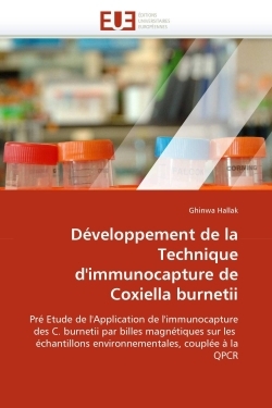 La fièvre Q est une zoonose ubiquitaire causée par l''agent pathogène Coxiella burnetii. Les ruminants domestiques sont les réservoirs principaux,et la source de contamination de l''homme. L''environnement joue un rôle principal dans la dissémination de C. burnetii, sous forme d''aérosols contaminés. Mon projet de stage consiste à mettre en place la technique d''immunocapture de C. burnetii, et à l''optimiser afin de l''adapter sur des échantillons environnementaux. L''immunocapture est effectuée avec des billes magnétiques couplées avec des anticorps anti-C.burnetii. Tout d''abord, la spécificité de la technique vis-à-vis de C. burnetii a été vérifiée. Ensuite, plusieurs paramètres de la technique (quantités d''anticorps, de billes et de bactéries) ont été modifiés afin d''optimiser le rendement de la capture. La quantification des bactéries capturées a été effectuée par qPCR TaqMan® La technique de l''immunocapture peut contribuer à l''isolement des bactéries à partir d''une matrice complexe d''une façon spécifique. Elle participe à l''augmentation de l''efficacité d''une PCR lors d''un diagnostic à travers l''élimination des éléments inhibiteurs de la PCR.