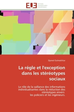 Ce livre est consacré au rôle de la saillance des informations individualisantes dans la réduction des stéréotypes liés aux professions de Policier et d'Ingénieur. La saillance en tant que propriété intrinsèque des informations est étudiée à travers quatre recherches expérimentales. Les résultats suggèrent que l'impact des informations individualisantes sur la réduction de l'attribution stéréotypée dépend à la fois de la nature plus ou moins saillante des informations, de la catégorie d'appartenance de la cible (policier ou l'ingénieur.), de la nature des traits stéréotypés (trait idéologique ou d'apparence physique) et de leur valence (positive/négative). Entre deux informations très saillantes, celle qui contredit directement une composante centrale du stéréotype induit plus de réduction de la stéréotypie que celle qui n'est pas contradictoire. L'ensemble des résultats est interprété selon le modèle du continuum (Fiske et Neuberg, 1990) et discuté en terme de processus cognitifs, comme l'activation de l'attention et la profondeur du traitement des informations, mais aussi en termes de processus motivationnels et émotionnels.