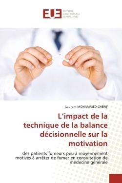 L'objectif de cette étude est d'évaluer l'impact à 1 mois de la balance décisionnelle sur la motivation des fumeurs à arrêter le tabac en comparaison à une intervention brève seule en médecine générale.Une étude interventionnelle contrôlée non randomisée a été menée chez des patients âgés de 18 et 75 ans fumant quotidiennement, peu à moyennement motivés à arrêter de fumer consultant en médecine générale. Ils bénéficiaient soit de la technique de la balance décisionnelle (BD) associée à une intervention brève (groupe BD) soit à d'une intervention brève uniquement (groupe contrôle). Les données ont été recueillies à 15 jours et 1 mois par téléphone. Le critère de jugement principal était une augmentation de 3 points au Questionnaire de Motivation à l'Arrêt du Tabac (Q-Mat) à la fin de la période de suivi. Il semblerait que la technique de la balance décisionnelle associée à une intervention brève peut être un bon outil pour accroître la motivation des patients peu à moyennement motivés à arrêter de fumer en médecine générale mais une étude plus longue avec d'avantage de patients serait nécessaire pour confirmer cette tendance.