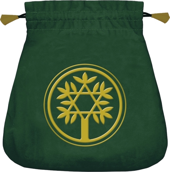 Bourse en velours brodée représentant un arbre, symbole du New Age, d'élégance et de puissance mystique. Broderie de fil jaune sur velours vert, dans un format parfait pour une protection de vos jeux de Tarot les plus précieux. Dimensions : 20 x 20 cm.