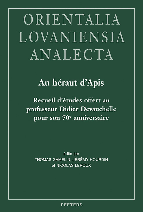 Les trente-deux contributions de cet ouvrage sont réunies pour honorer la carrière de Didier Devauchelle, l’égyptologue et le philologue, à l’occasion de son 70e anniversaire. Ce dernier étant un démotisant renommé, le lecteur ne sera pas surpris qu’une large part de ce recueil regroupe des études de documents démotiques, souvent inédits. Les articles touchent à des domaines aussi variés que la religion, l’histoire, la philologie ou encore la littérature. À côté de travaux portant notamment sur la comptabilité, le droit, la lexicographie et la prosopographie, figurent aussi le Sérapéum de Memphis et le culte du taureau sacré Apis – un sujet au cœur de l’œuvre scientifique de Didier Devauchelle –, le tout composant un ensemble dont la diversité thématique témoigne de l’insatiable curiosité du récipiendaire pour tout ce qui touche à l’Égypte ancienne.