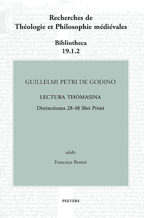 The so-called Lectura Thomasina , a commentary on Peter Lombard’s Sentences , was composed by the Dominican William of Peter of Godin at the beginning of the 14th century. The manuscript tradition provides the text with the title ‘Thomasina’ because of the large number of verbatim quotations from Aquinas’ writings. This text is not a mere compilation of Aquinas’ dicta but represents an attempt to outline the fundamental elements of Thomas’ doctrine, giving them both unity and coherence. For this reason, Godin’s commentary is an important witness to the reception of Aquinas’ texts during the period between his death and his canonization. In this part of his Sentences commentary (distinctions 28-48), Godin deals with some central themes of scholastic theology, such as divine persons, divine knowledge, angels and their location, providence, predestination, and divine will.