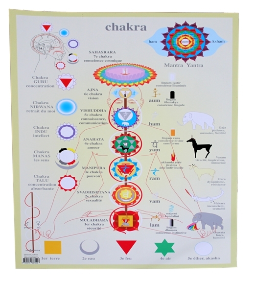 Très beau poster plastifié représentant les sept chakras et toutes leurs correspondances. Format 42 x 61 - version plastifiée