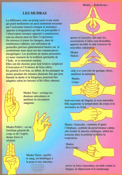 Quinze positions de mains (mudras) sont présentées. Elles ont été choisies pour leur simplicité d’exécution et leur influence énergétique - Lot de 5