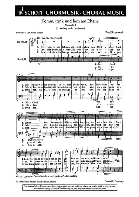 "Ich liebte vor Jahren ein Mädchen". men's choir (TTBB) a cappella or with piano. Partition de chœur.