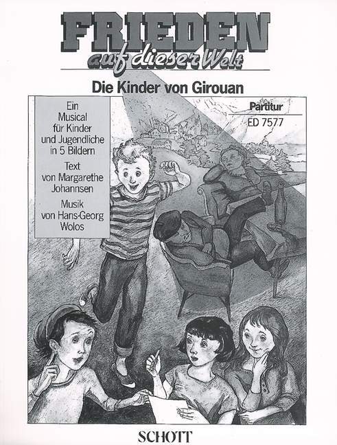 (Die Kinder von Girouan). choir, solo parts, speakers, flute, 2 keyboards, accordion, piano, cello, electric bass or double bass, guitar or electric guitar, percussion. Partition.