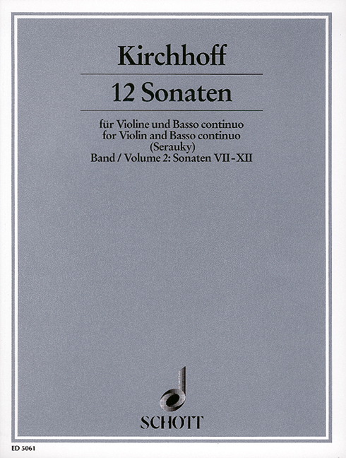 GOTTFRIED KIRCHHOFF : TWELVE SONATAS BAND 2 - 12 SONATEN VOL 2. - VIOLIN AND BASSO CONTINUO