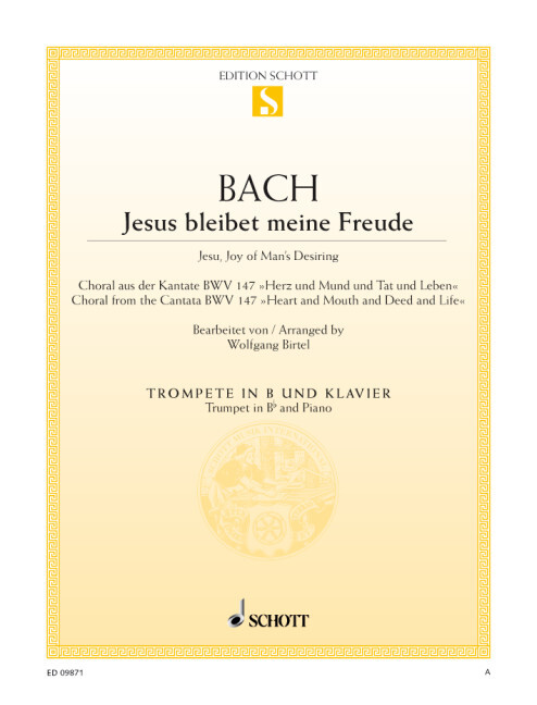 Allenfalls die "Air" von Johann Sebastian Bach kann es an Popularität mit seinem Satz "Jesus bleibet meine Freude" aufnehmen: Der Schlusschor aus der Kantate BWV 147 "Herz und Mund und Tat und Leben" ist in seiner Schlichtheit und Vollkommenheit zugleich zu einem wahren "Ohrwurm" geworden, an dem man sich kaum satt hören kann. Diese Bearbeitung macht diesen Klassik-"Hit“ auch als Vortrags- und Konzertstück für Trompete mit Klavier- oder Orgelbegleitung zugänglich. Schwierigkeitsgrad: 2-3