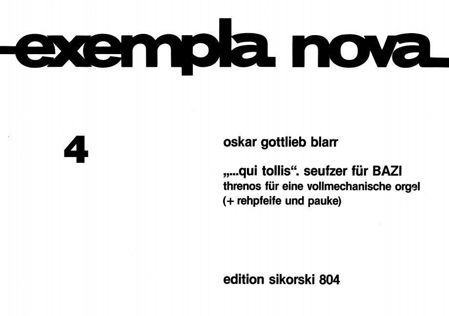 Seufzer für BAZI. Threnos für eine vollmechanische Orgel (+ Rehpfeife und Pauke). 4. organ.