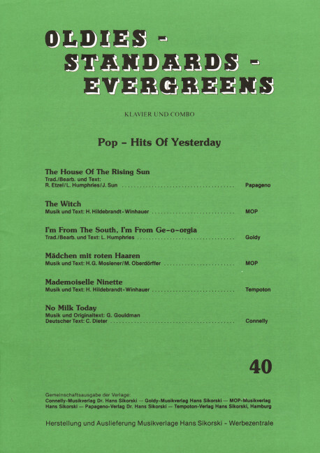 Heft 40: Pop-Hits of Yesterday. piano.