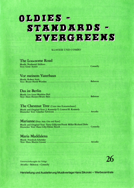 Heft 26. C-voice, B-voice, Eb-voice, bass, piano. Partition de piano.