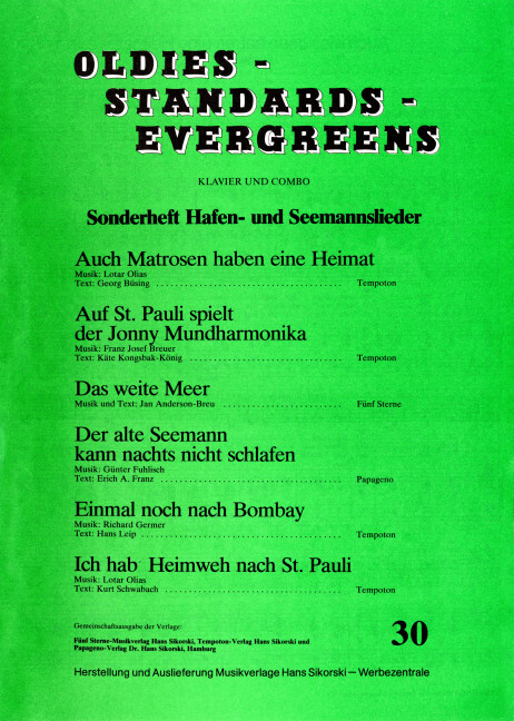 Heft 30: Hafen- und Seemannslieder 1. C-voice, B-voice, Eb-voice, bass, piano. Partition de piano.