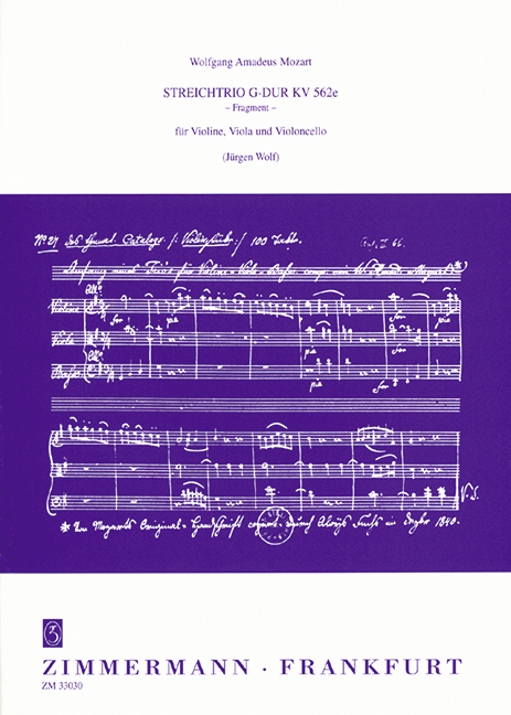 Bei diesem Streichtrio handelt es sich um ein Original-Fragment. Mozart komponierte das Werk 1788 in Wien für seinen Freund und Logenbruder Michael Puchberg, der ihm aus einigen Verlegenheiten geholfen hatte. Die Exposition ist vollständig ausgeführt, danach folgen noch 9 Takte. Vermutlich hat Mozart die weitere Ausführung zugunsten des im Köchelverzeichnis nachfolgenden Divertimentos KV 563 zurückgestellt. Der vorliegenden Ausgabe, die die Exposition enthält, liegt die Abschrift durch A. Fuchs von 1840 zugrunde, die sich im Archiv der Berliner Staatsbibliothek befindet.