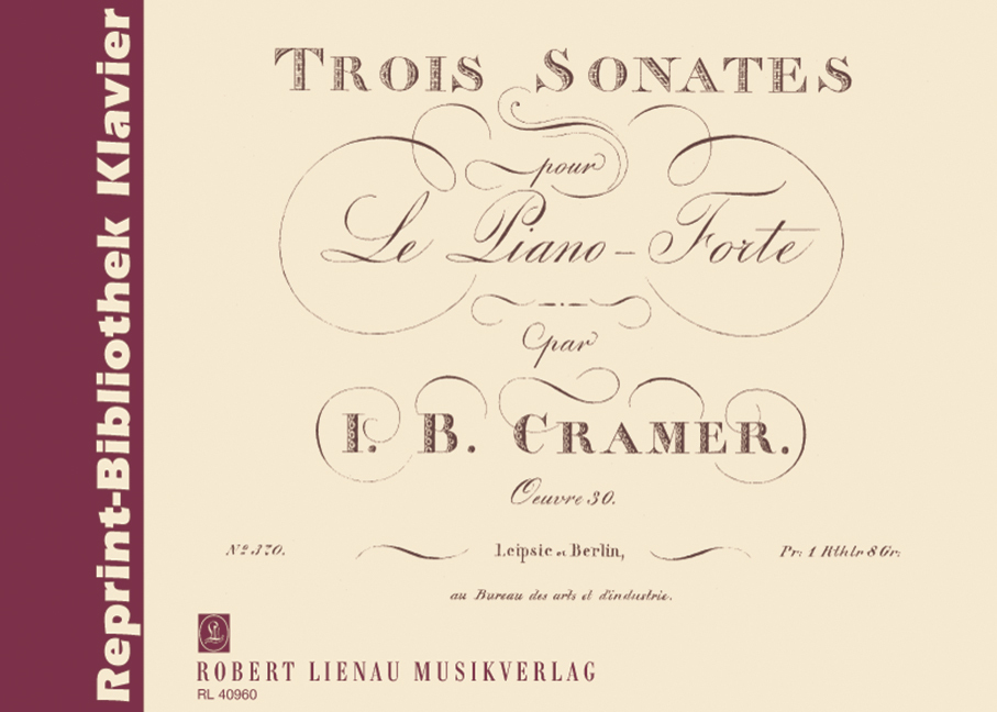 Johann Baptist Cramer wurde am 24. Februar 1771 in Mannheim geboren. Mit drei Jahren kam er mit seinen Eltern nach London. Er erhielt Klavierunterricht bei M. Clementi und J. S. Schröter, des weiteren war er Kompositionsschüler von C. F. Abel. Sein Vater war einer der bedeutendsten Violinvirtuosen seiner Zeit und baute seinen Sohn als Wunderkind auf. Bereits im Alter von dreizehn Jahren trat Cramer mit Clementi öffentlich auf. Nach seiner ersten Europa-Tournee wurde er in England einer der führenden Pianisten. Von 1832 bis 1845 lebte er in Paris, danach kehrte er endgültig nach London zurück. Dort gründete er den Musikverlag J. B. Cramer & Cie., den er bis zu seinem Tod am 16. April 1858 leitete. Von Cramer war schon früh kaum mehr noch als das didaktische Werk bekannt. Er schrieb 105 Klaviersonaten, die sich durch eine klassizistische Ausgewogenheit auszeichnen. Die 1816 bei Schlesinger erschienenen 3 Sonaten in Es/D/Es können mehr als nur historisches Interesse beanspruchen. Sie tragen auf der Originalausgabe die Opuszahl 30. In der Neuausgabe der Enzyklopädie "Die Musik in Geschichte und Gegenwart" werden sie mit Opus 25 gekennzeichnet.