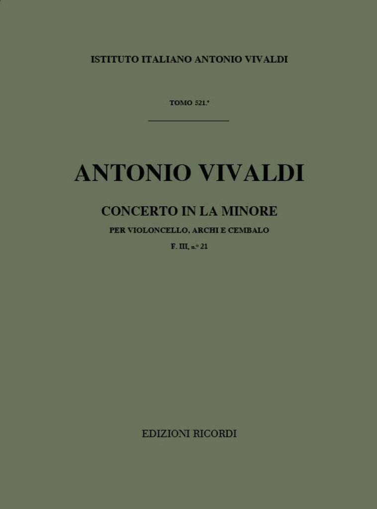 ANTONIO VIVALDI : CONCERTO IN LA MINORE. RV 420 - VIOLONCELLE SOLO ET ORCHESTRE A CORDES & CLAVECIN