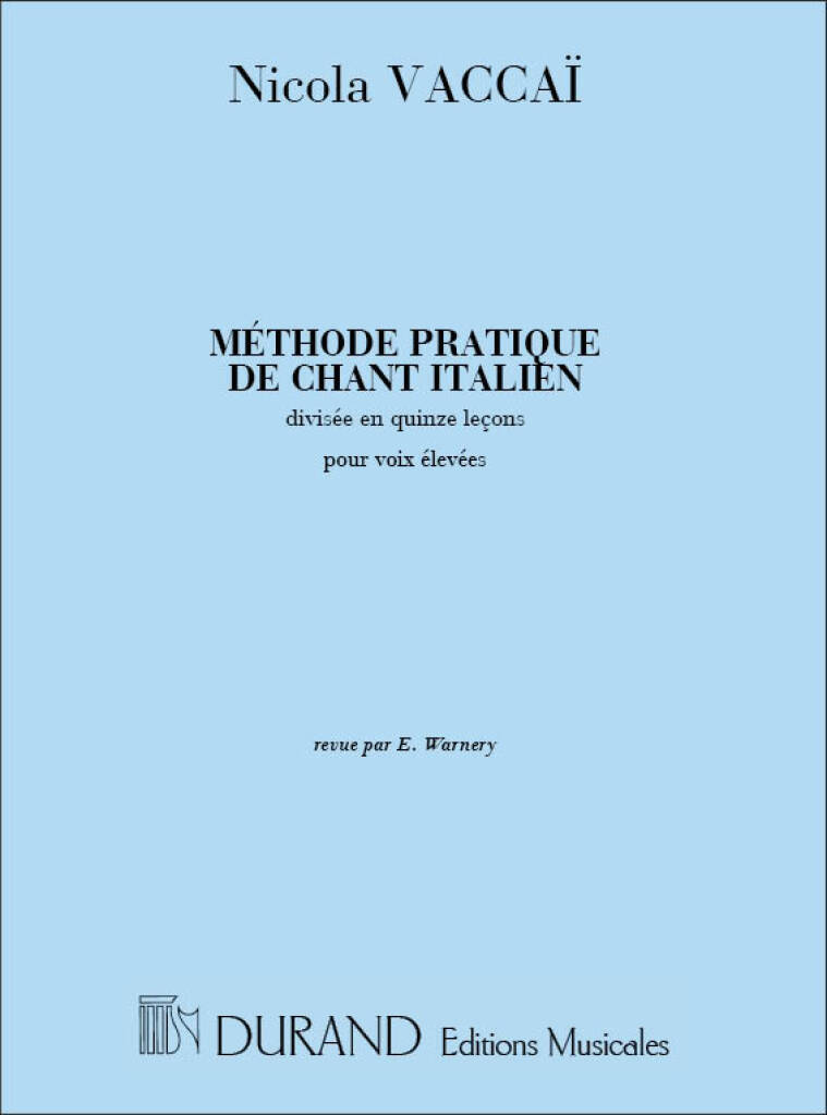 NICOLA VACCAI : METHODE PRATIQUE DE CHANT ITALIEN DIVISEE EN 15 LECONS POUR VOIX ELEVEES
