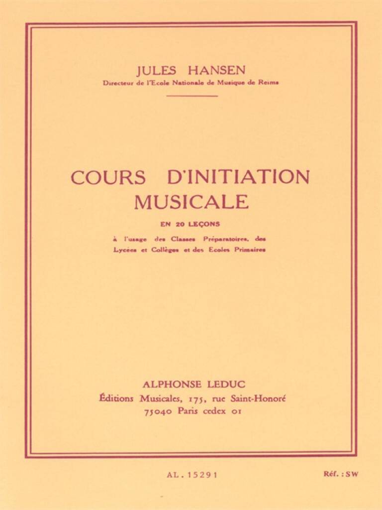 HANSEN COURS D'INITIATION MUSICALE EN 20 LECONS CLE DE SOL BOOK