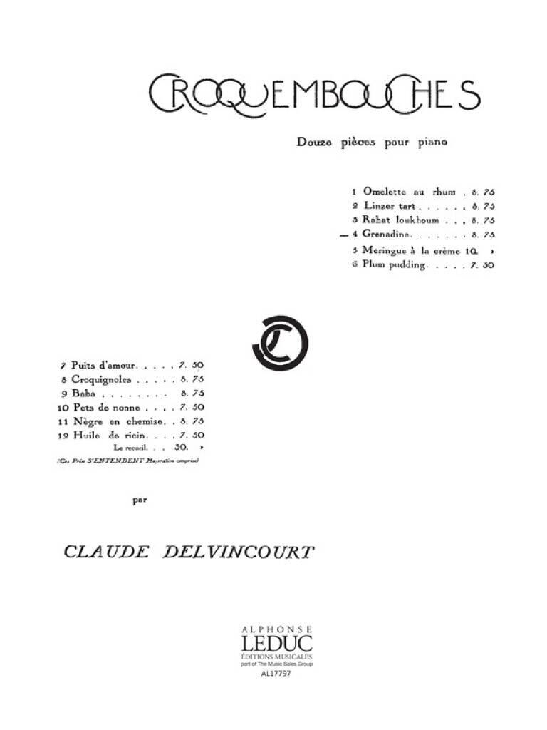 CLAUDE DELVINCOURT: CROQUEMBOUCHES NO.4: GRENADINE (PIANO SOLO) PIANO