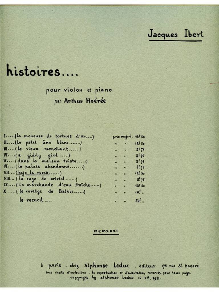 JACQUES IBERT: BAJO LA MESA (VIOLIN & PIANO)