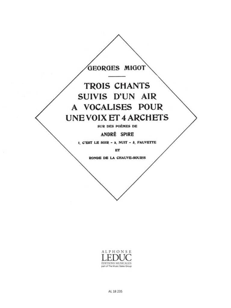 GEORGES MIGOT: 3 CHANTS SUIVIS D'UN AIR A VOCALISES (VOICE & PIANO)