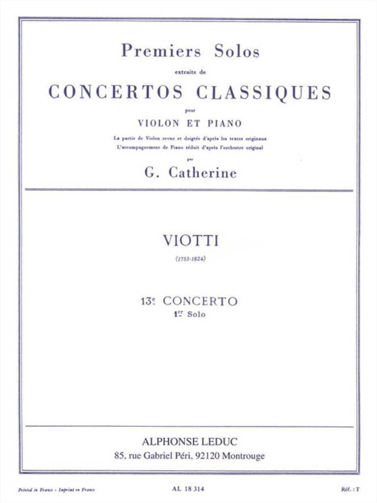 VIOTTI PREMIERS SOLOS CONCERTOS CLASSIQUES NO 13 (CATHERINE) VLN/PF BK