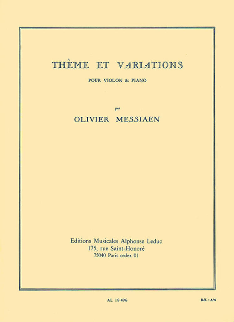 OLIVIER MESSIAEN - THEME ET VARIATIONS FOR VIOLIN AND PIANO