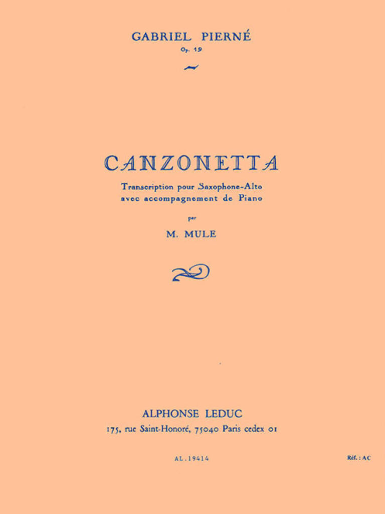 GABRIEL PIERNE: CANZONETTE, OP.19 (ALTO SAXOPHONE/PIANO)