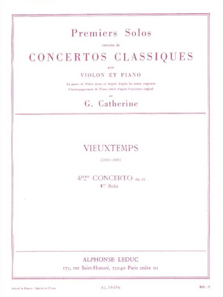 VIEUXTEMPS PREMIER SOLO EXTRAIT CONCERTO NO 4 OP 31 VIOLIN & PIANO BK