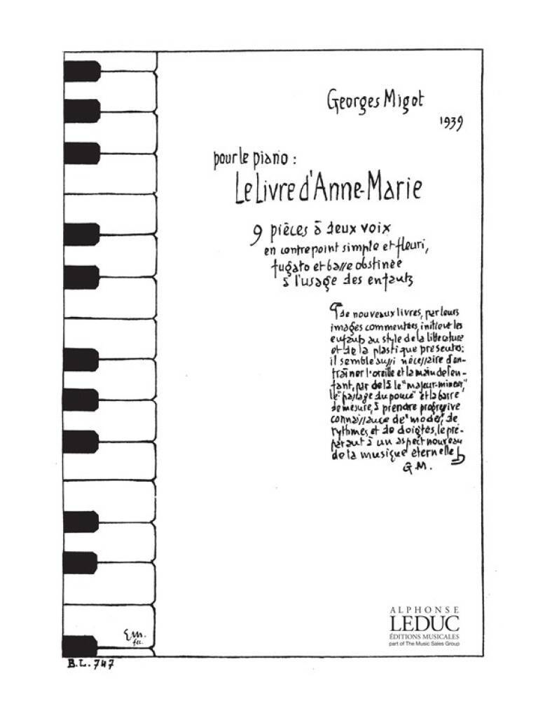 MIGOT GEORGES LIVRE D'ANNE MARIE PIANO BOOK PIANO