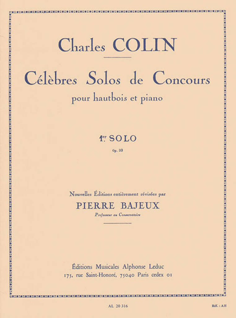 CHARLES COLIN: FAMOUS SOLOS FOR COMPETITIONS, FOR OBOE AND PIANO (1ST SOLO). REVISED BY PIERRE BAJEU