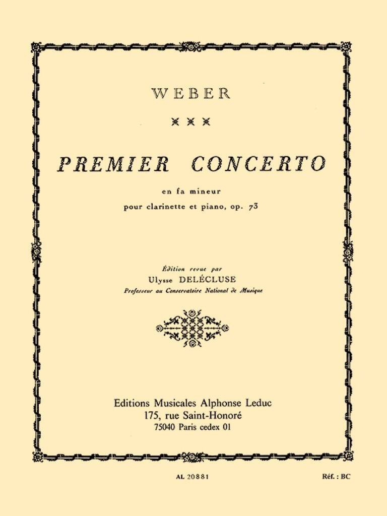 WEBER DELECLUSE CONCERTO IN F MINOR NO 1 CLARINET & PIANO BOOK
