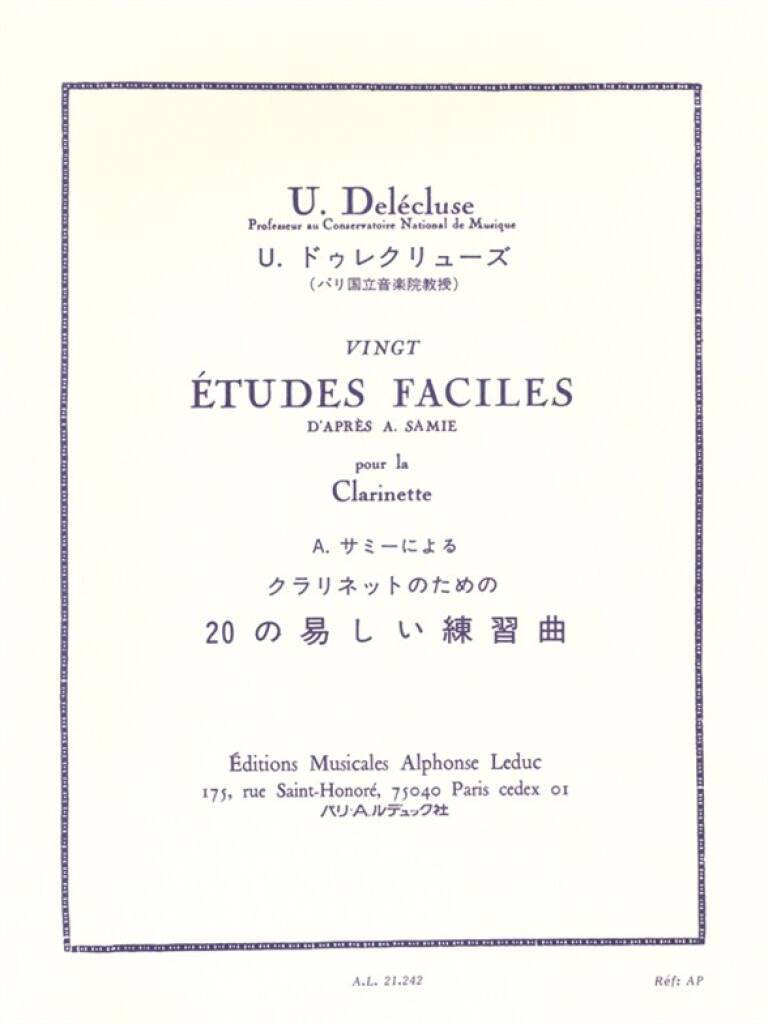 ULYSSE DELECLUSE : 20 ETUDES FACILES - D'APRES A. SAMIE POUR LA CLARINETTE