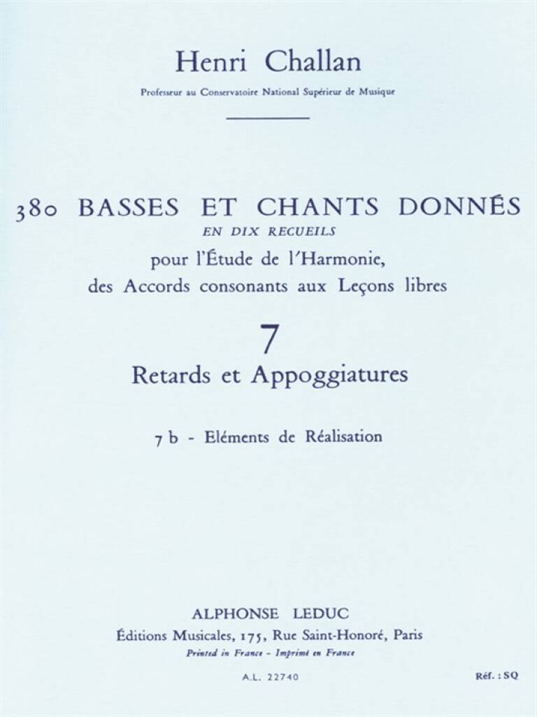 HENRI CHALLAN: 380 FIGURED BASS EXERCISES (7B)