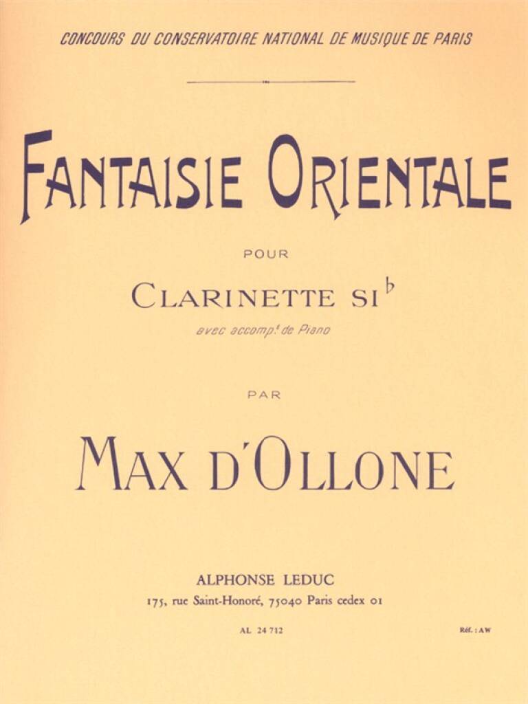 MAX D'OLLONE: FANTAISIE ORIENTALE POUR CLARINETTE SIB
