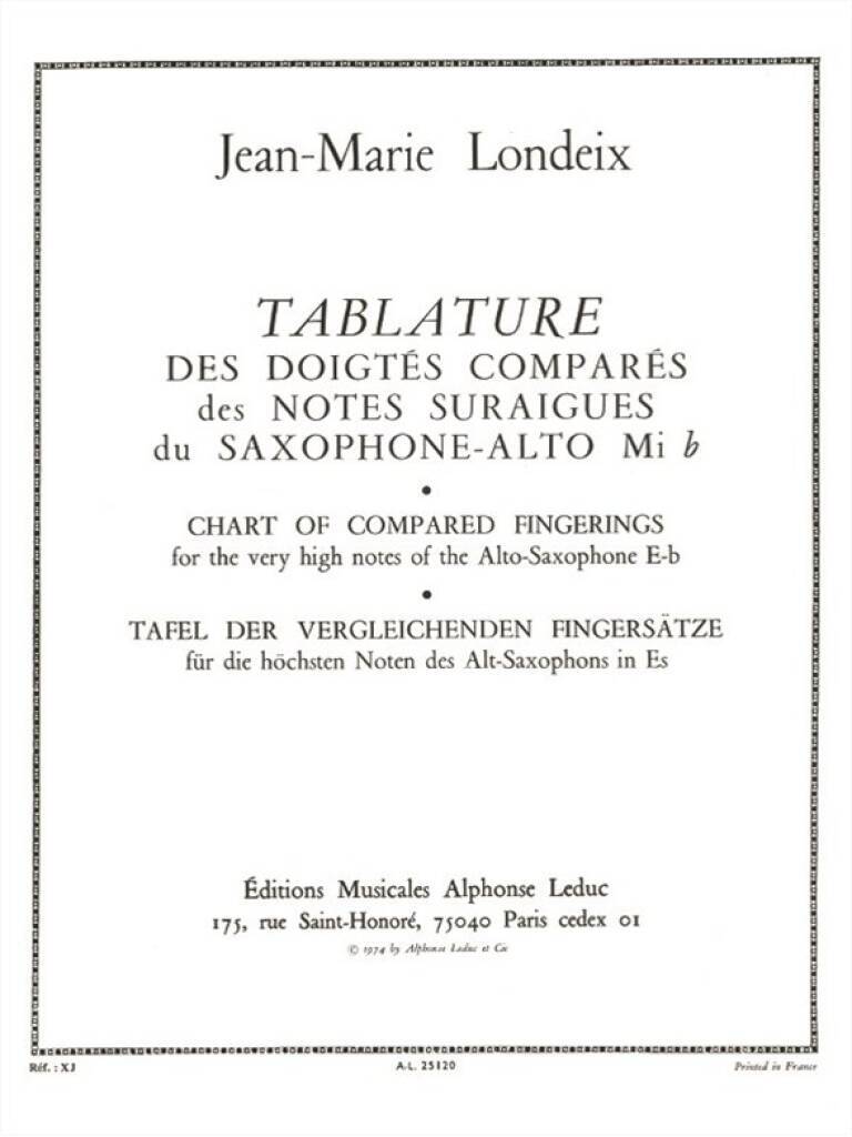 JEAN-MARIE LONDEIX: TABLATURE DES DOIGTES COMPARES DES NOTES SUR-AIGUES (SAXOPHONE SOLO)