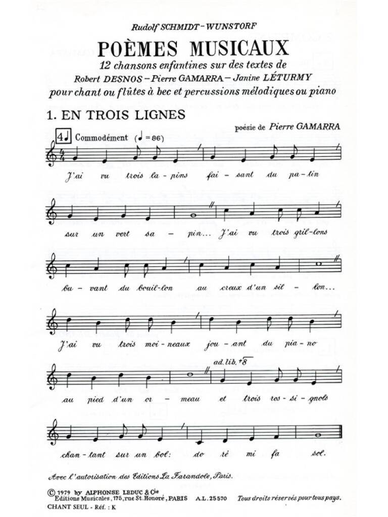 SCHMIDT WUNSTORF POEMES MUSICAUX VOICE & PERCUSSION PARTS