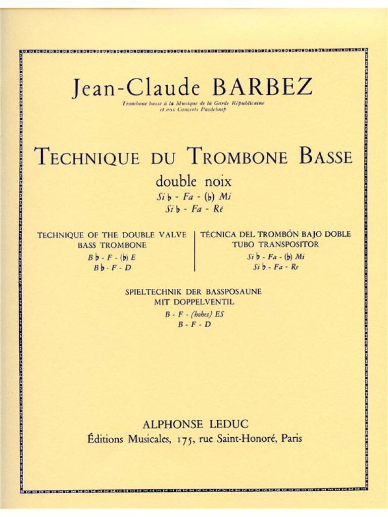 JEAN-CLAUDE BARBEZ: TECHNIQUE DU TROMBONE BASSE (TROMBONE-BASS SOLO)